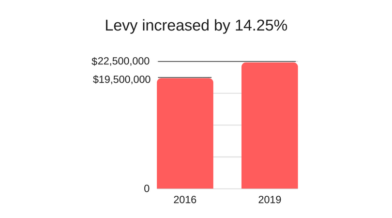 You’re paying more in taxes from 2016 through 2019 because the actual dollar amount of the levy has gone up during that time. The amount of the levy has gone up due to increased spending and higher debt.